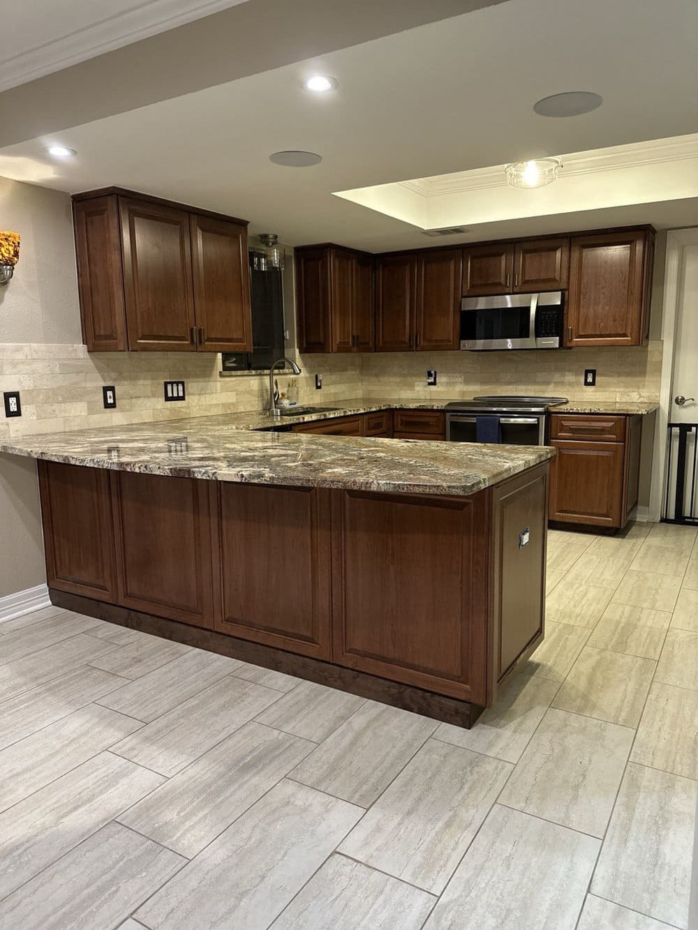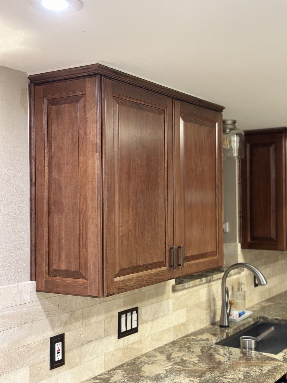 This full refacing gave the kitchen a high-end custom appearance without the cost of replacing the entire cabinet system. The client was thrilled to see her kitchen finally reflect her style and love for real wood.