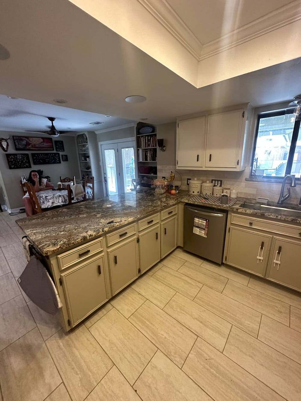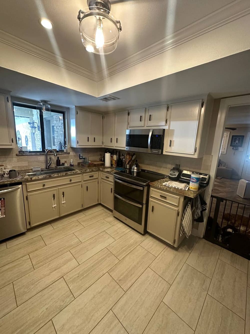 We painted the existing kitchen cabinets in a soft, light color that instantly brightened the space and gave it a more upscale appearance. The process included thorough surface prep, gap-filling, priming, and professional spray application for a smooth, elegant finish.